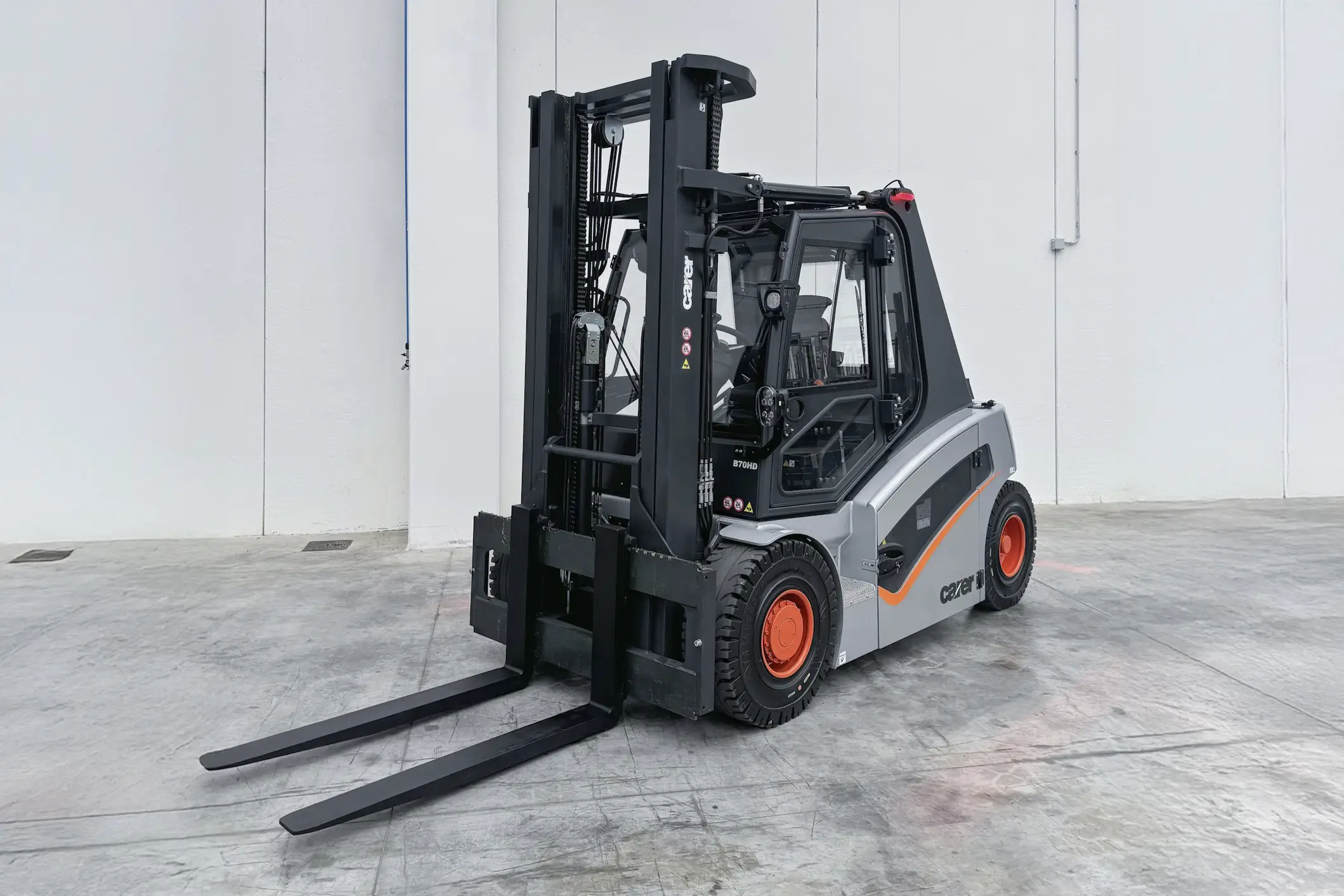 La série BH est idéale pour les utilisateurs qui ont besoin d'une position assise basse. L'accès confortable avec des marches larges et des poignées grandes facilite l'entrée et la sortie. Grâce à la technologie de 96 volts et aux grandes capacités de la batterie, une journée complète peut être réalisée avec une seule charge de batterie. La batterie est répartie sur 2 bacs et peut être facilement retirée avec un transpalette, de sorte qu'en quelques minutes, le chariot élévateur peut être utilisé pour un autre quart de travail. Au lieu d'un gros cylindre de levée libre, le chariot élévateur est équipé de 2 petits cylindres fixés à l'intérieur du mât pour les mâts duplex et triplex. En combinaison avec les profils de mât imbriqués, cela permet une excellente visibilité du mât, même avec des mâts duplex et triplex.